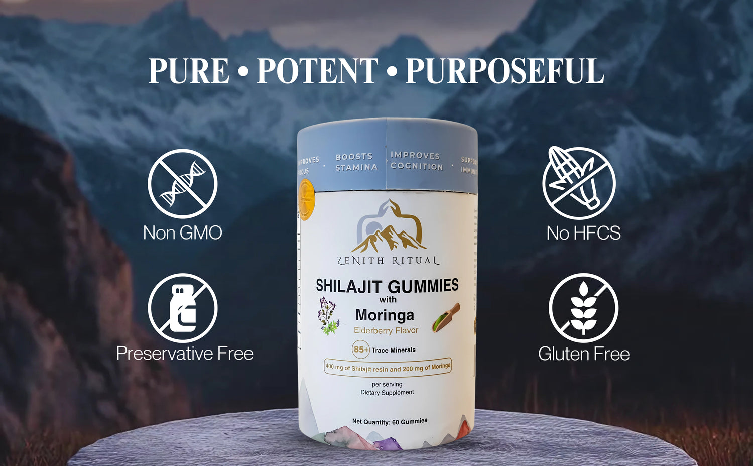 Formulated with a clean blend of Shilajit, Moringa, and Elderberry for daily energy, mental clarity, and immune support — without compromise.